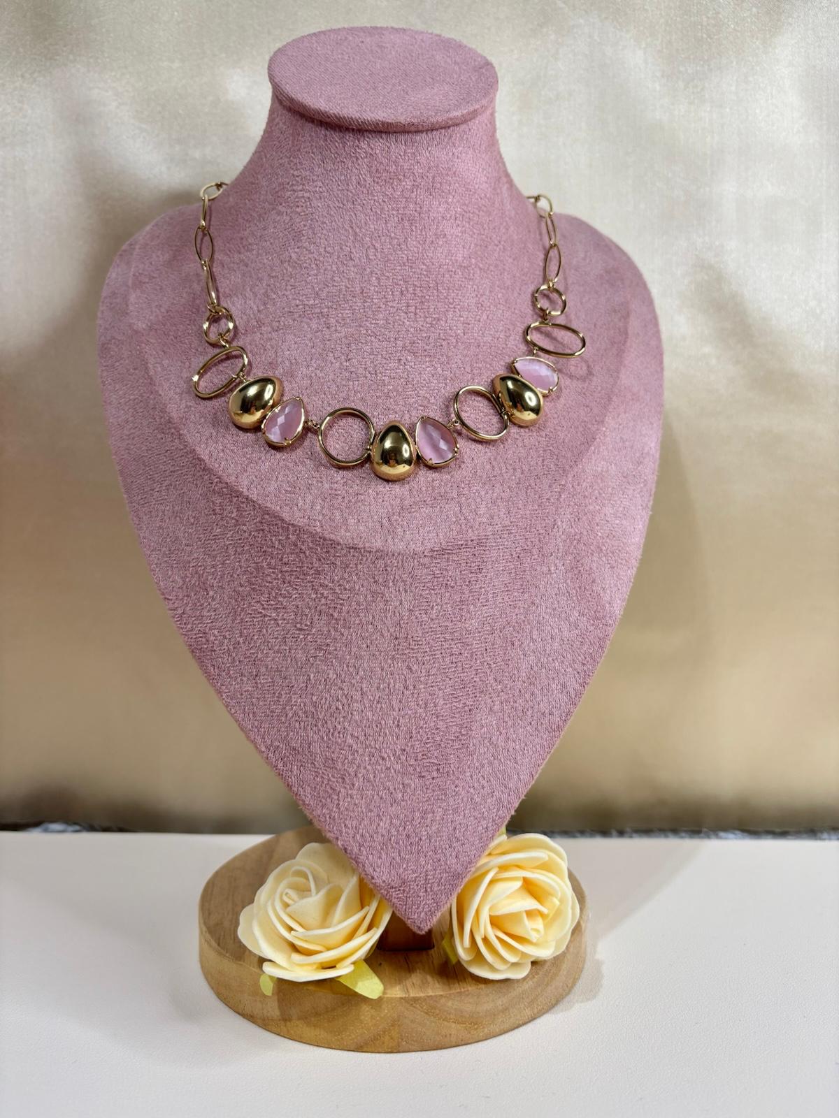 El collar Aurora Rosa de Cocowhite es una pieza elegante elaborada en acero con acabado dorado, diseñada para ofrecer durabilidad sin renunciar al estilo. Combina eslabones de líneas orgánicas con cristales en tono azul claro, creando un diseño luminoso y sofisticado.